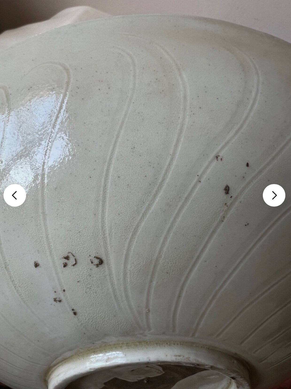藏友你好:你图片所发这是一件现代仿,仿宋代定窑风格的白釉暗刻莲花纹大碗!其造型呆板,釉面凝腻,纹饰拘谨,胎质生涩,包浆浅浮,是一件现代仿品,不建议购买收藏!