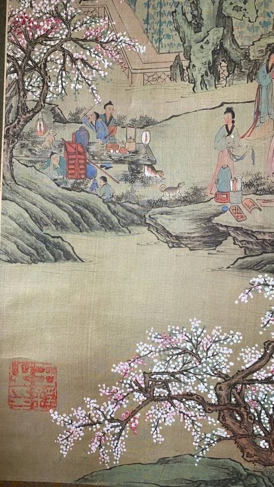 藏友你好:你图片所发这幅夜宴图,笔墨无浓淡变化,色调鲜艳无氧化痕迹,通体老旧感不自然,是一幅电脑复刻印刷的赝品,不建议当真迹购买收藏。