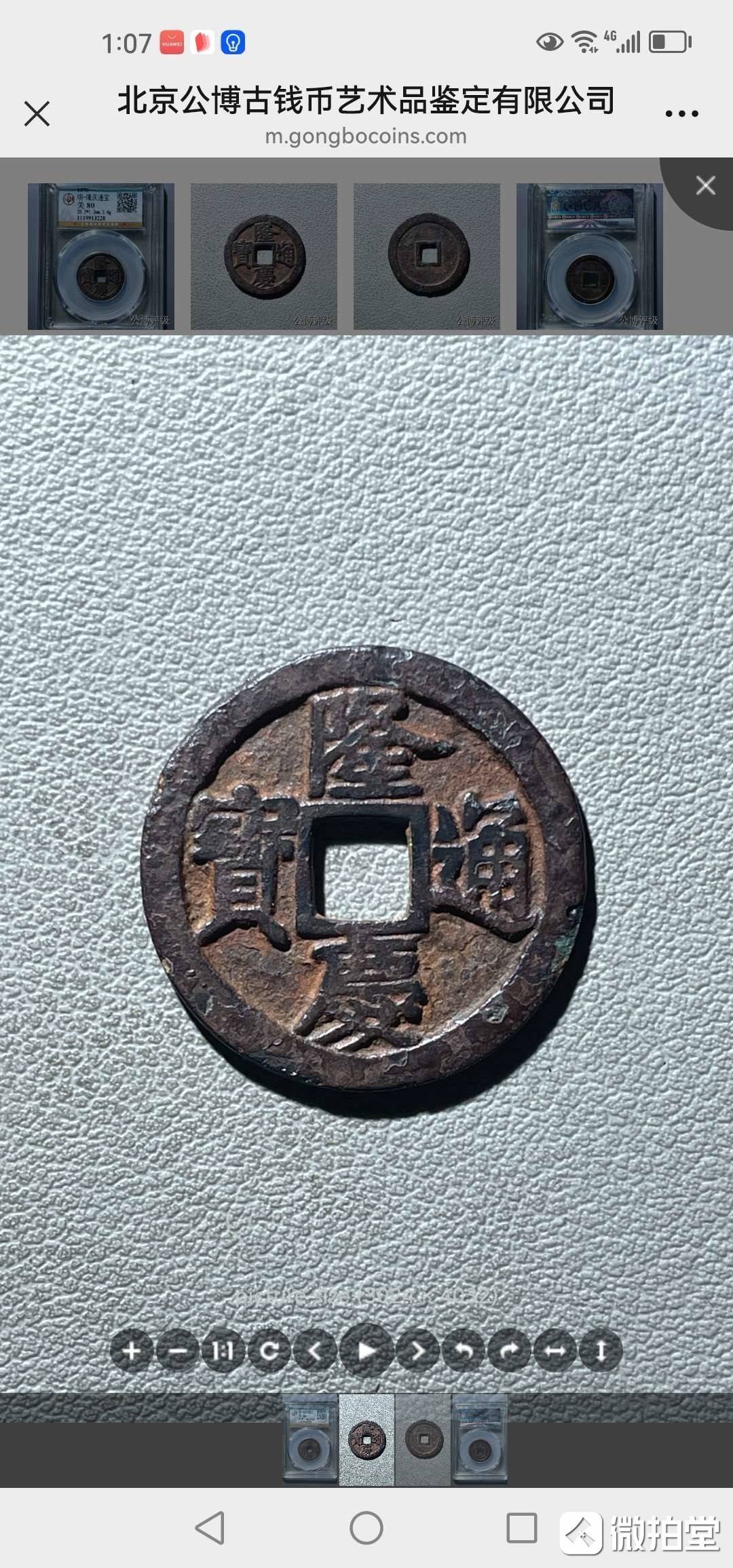 藏友你好:你图一所发隆庆通宝,真品,无裂修的话1600左右一枚。图三半两,真品,价格看重量。图六宋元通宝,精仿。图八乾隆通宝,仿品入盒。
