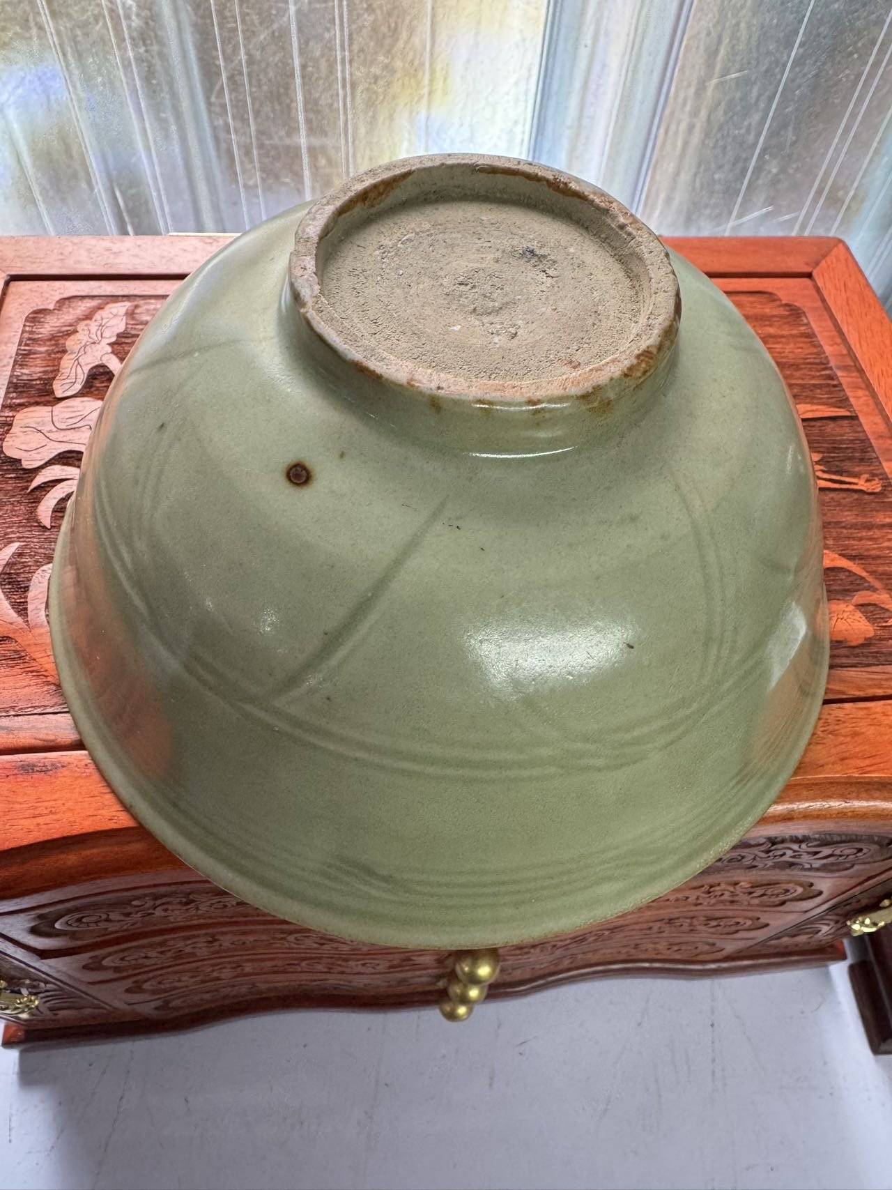 藏友你好:你图片所发这件龙泉青釉划花大碗,其造型规整,釉面温润,纹饰流畅,修足娴熟,胎质干爽,为南宋时期真品。全品估价6500-8000左右合理。