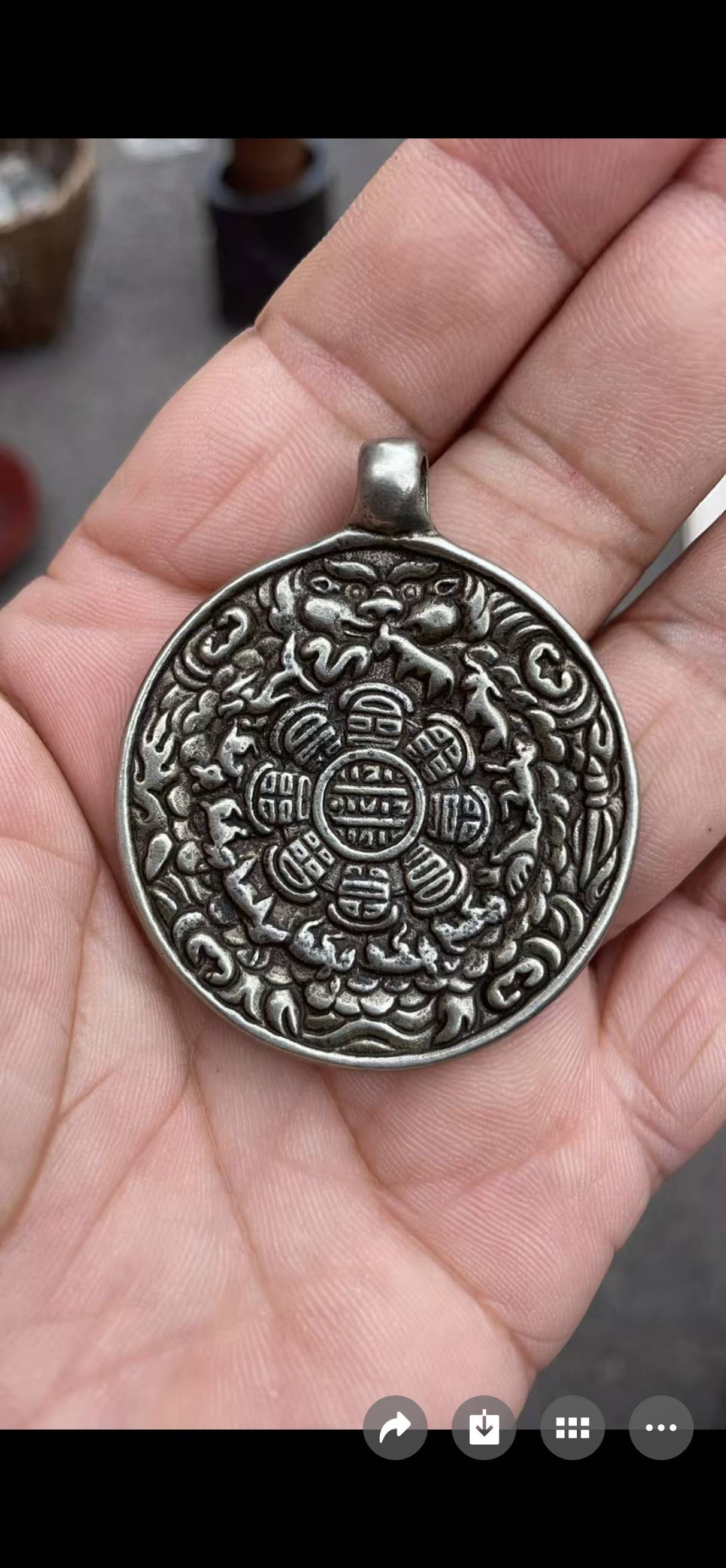 藏友你好:你图片所发这枚九宫牌,是一枚现代工艺品,没年份,市场批发价均在30以内一枚,不宜当老物件价格购买佩戴。