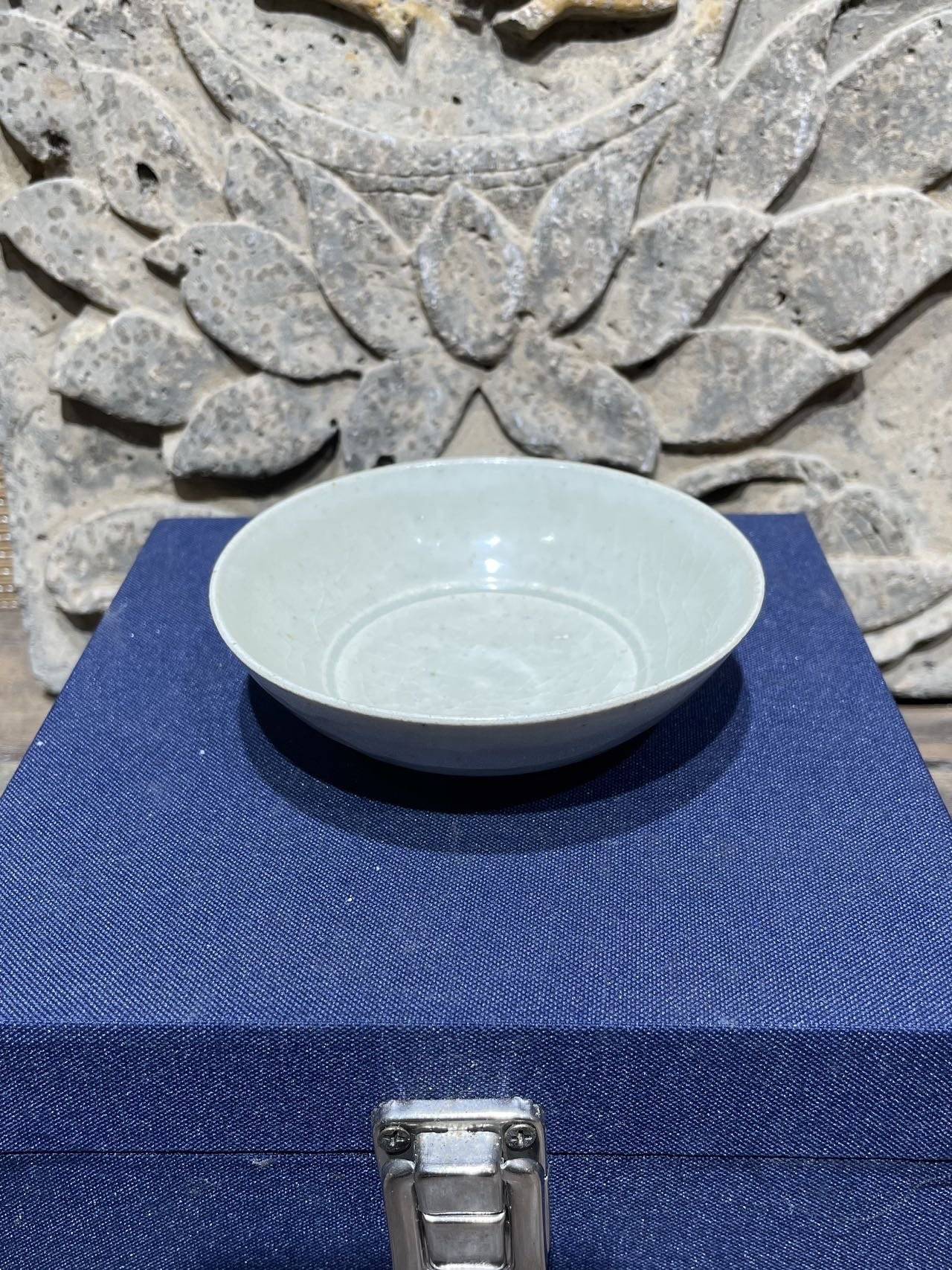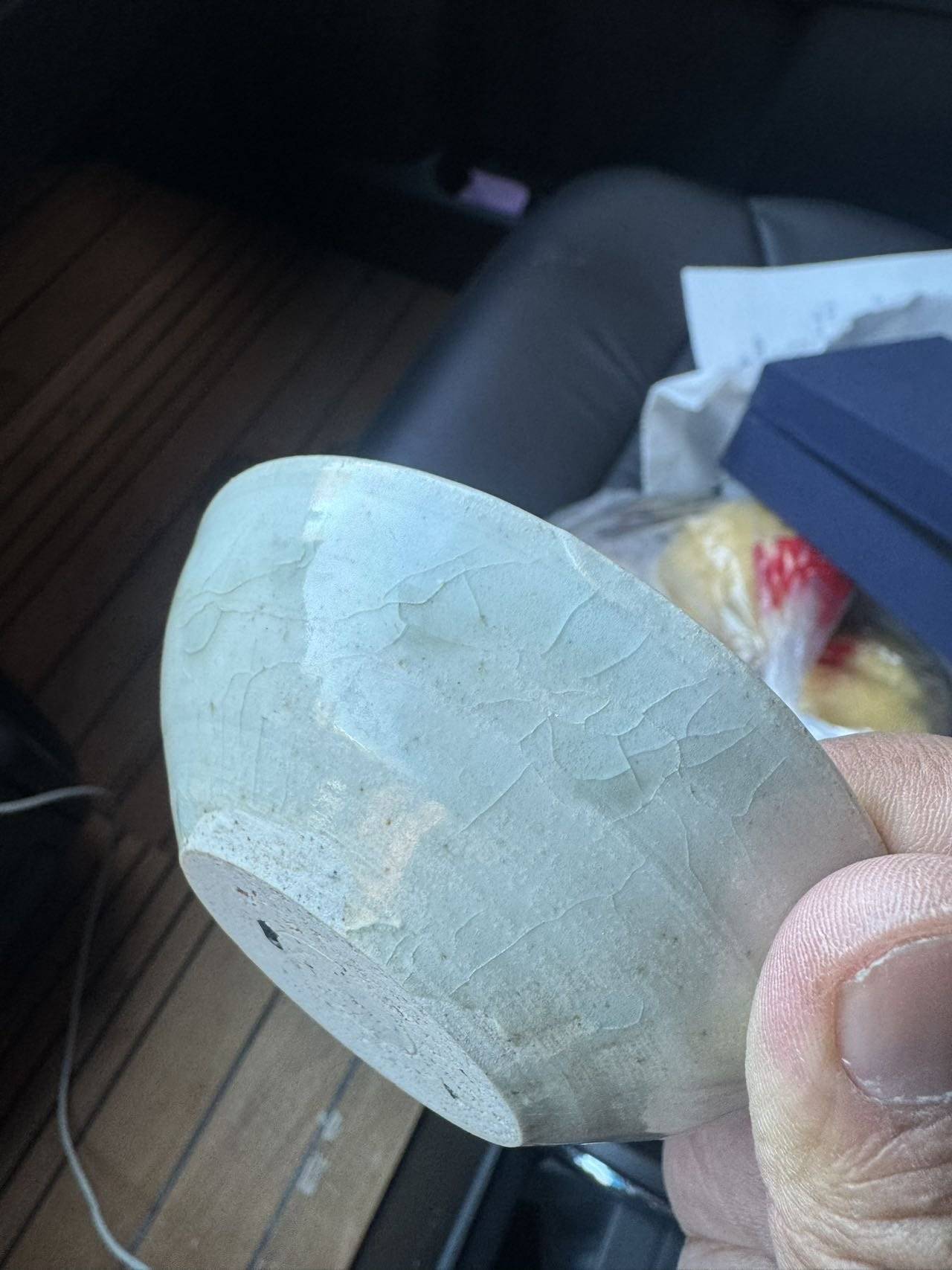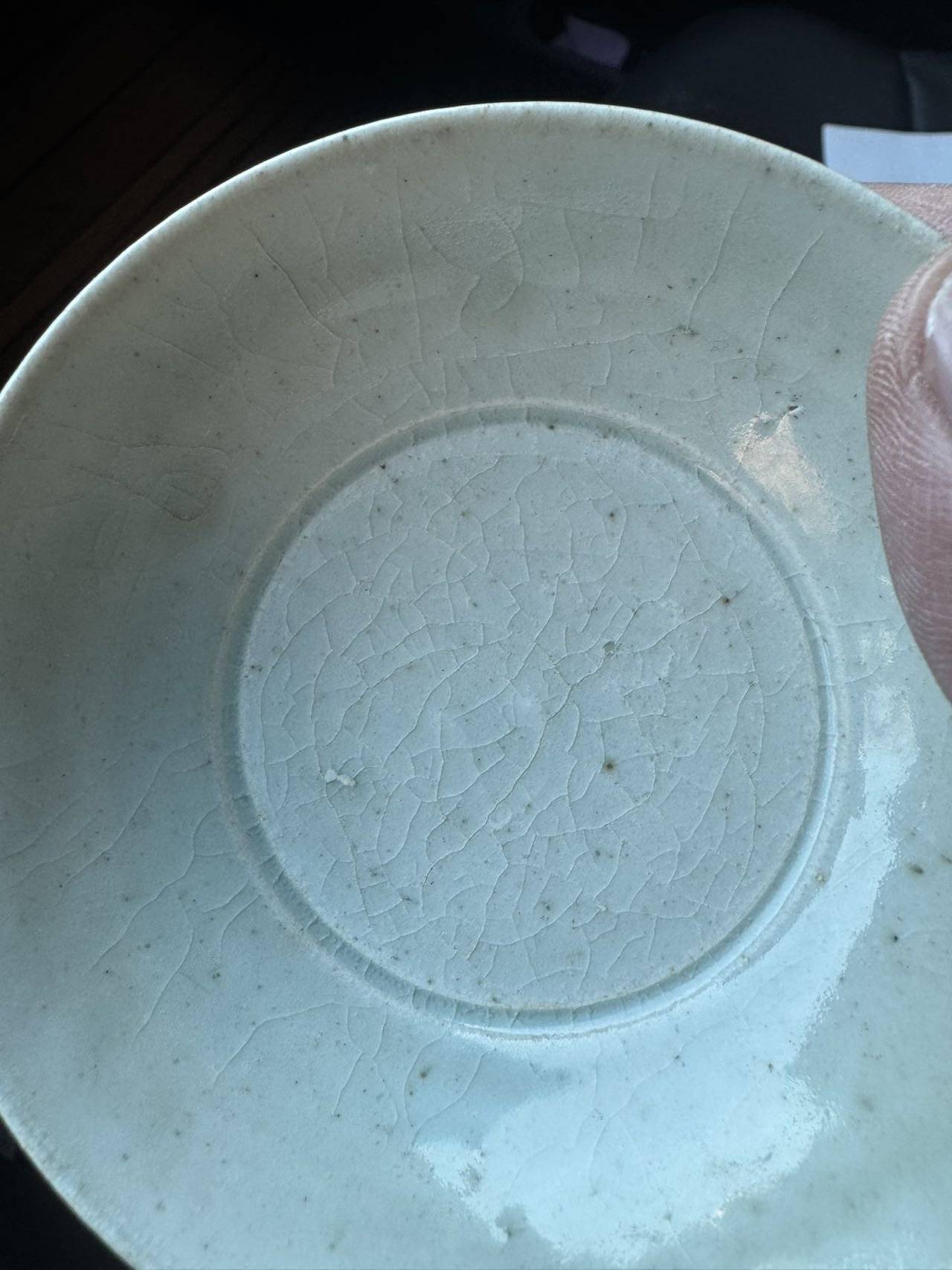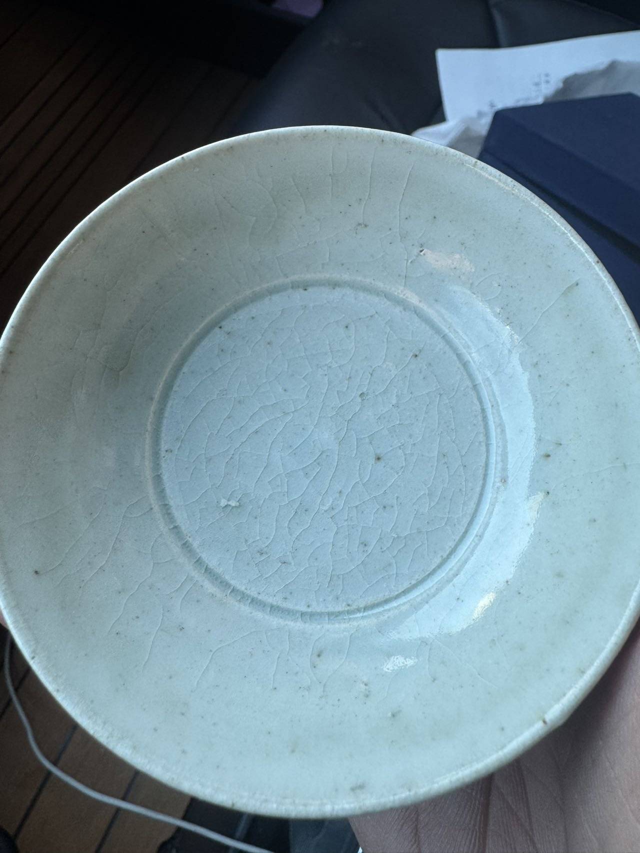 藏友你好:你图片所发这件青白釉小盏,其造型规整,釉面莹润,开片自然,沁色入骨,胎质坚实,为南宋时期真品。全品估价一两千元。
