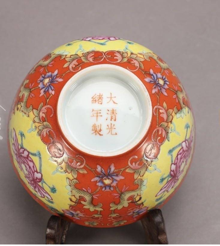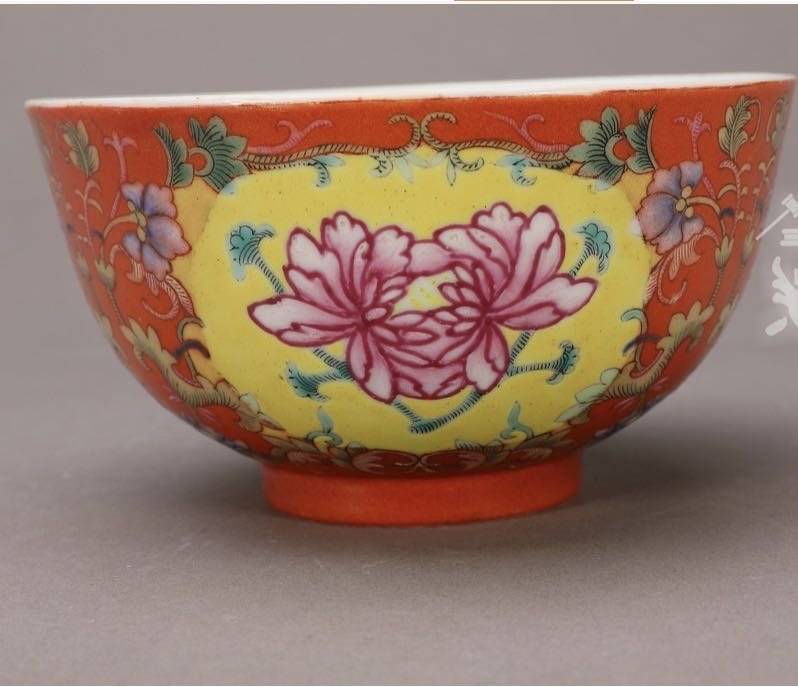请鉴别这只清光绪珊瑚红洋彩缠枝莲纹碗是官窑瓷器?当前价格。多谢