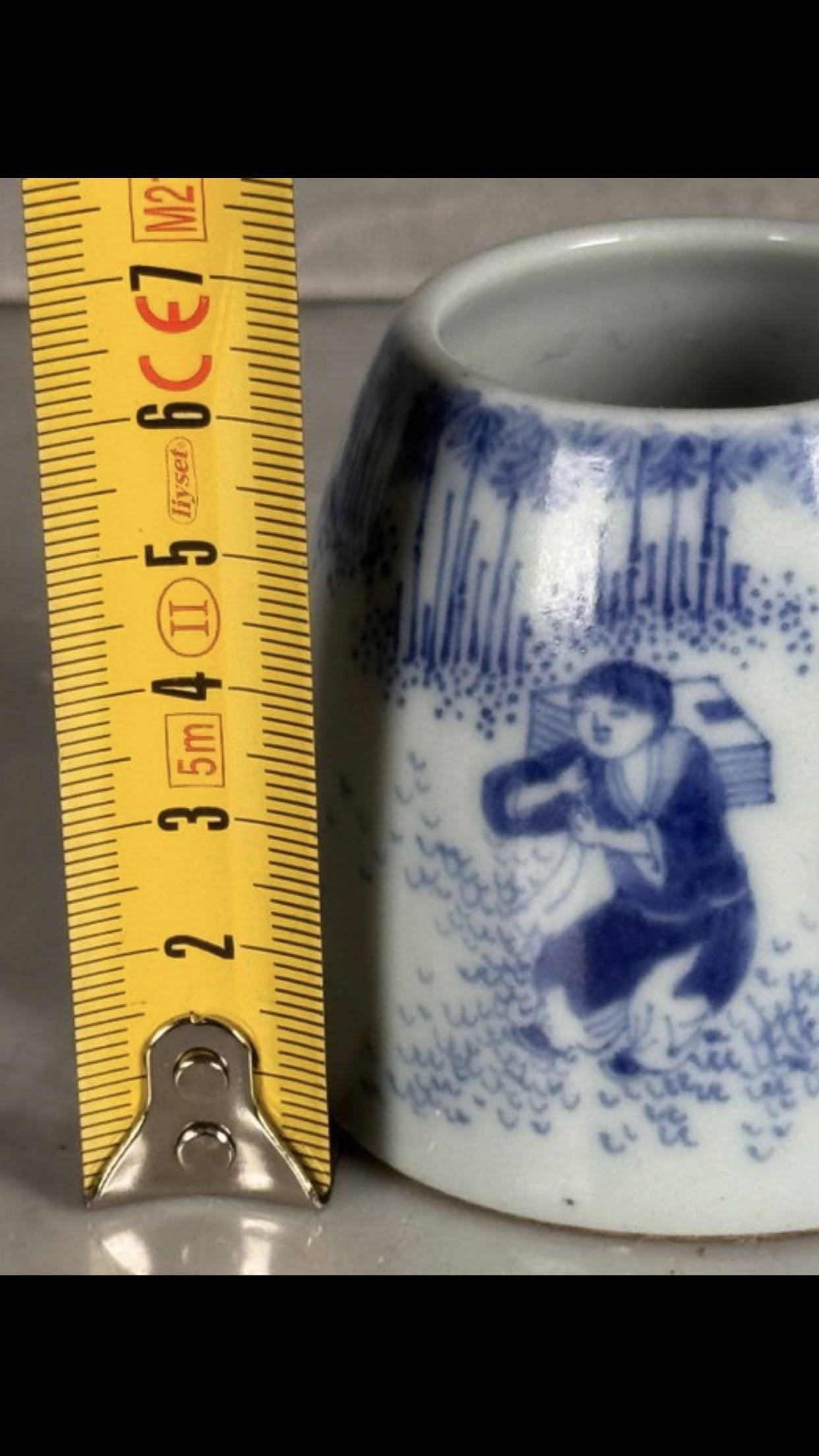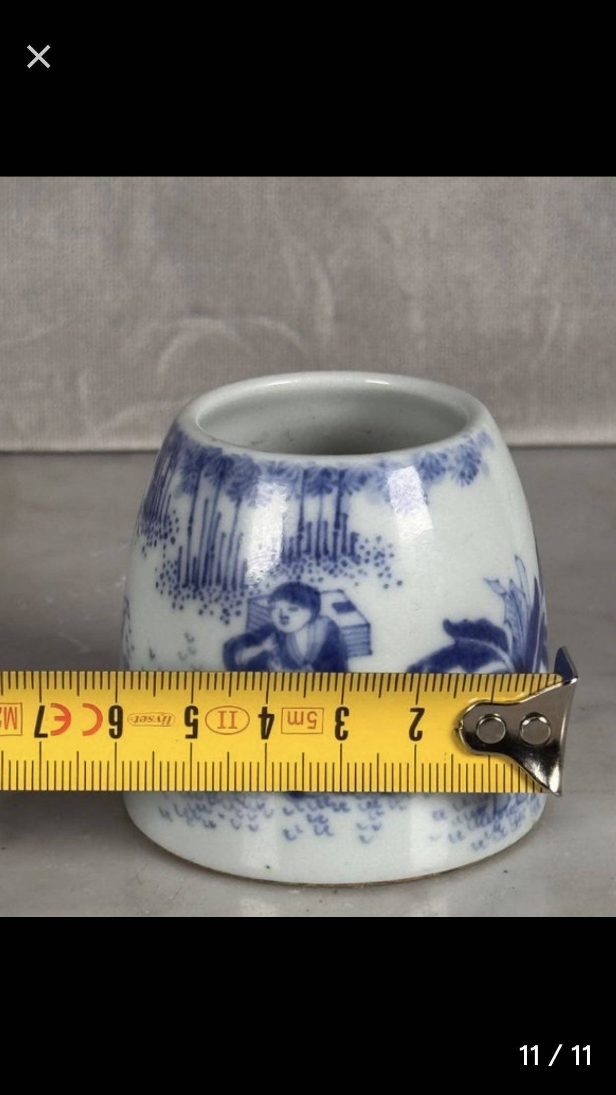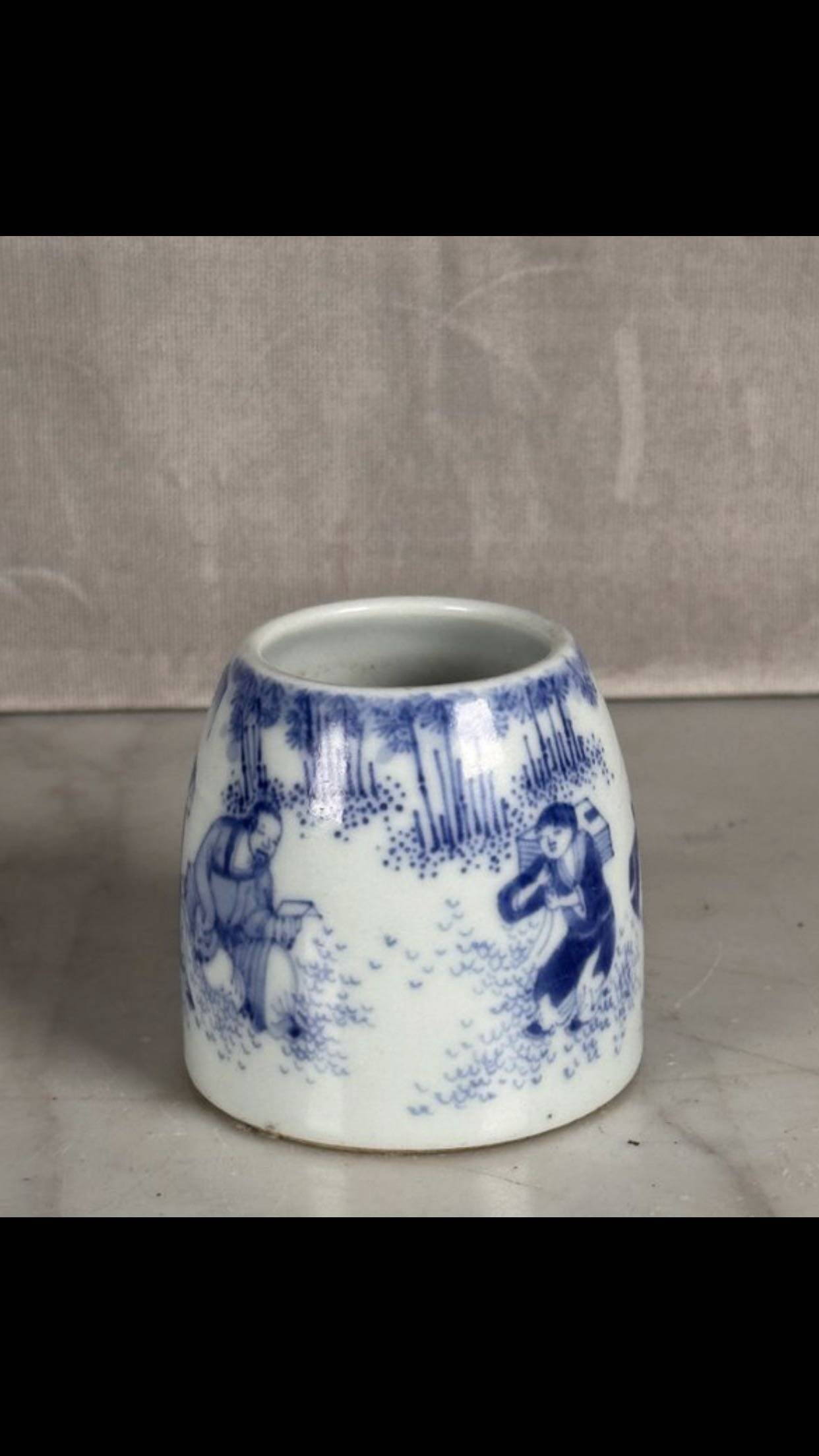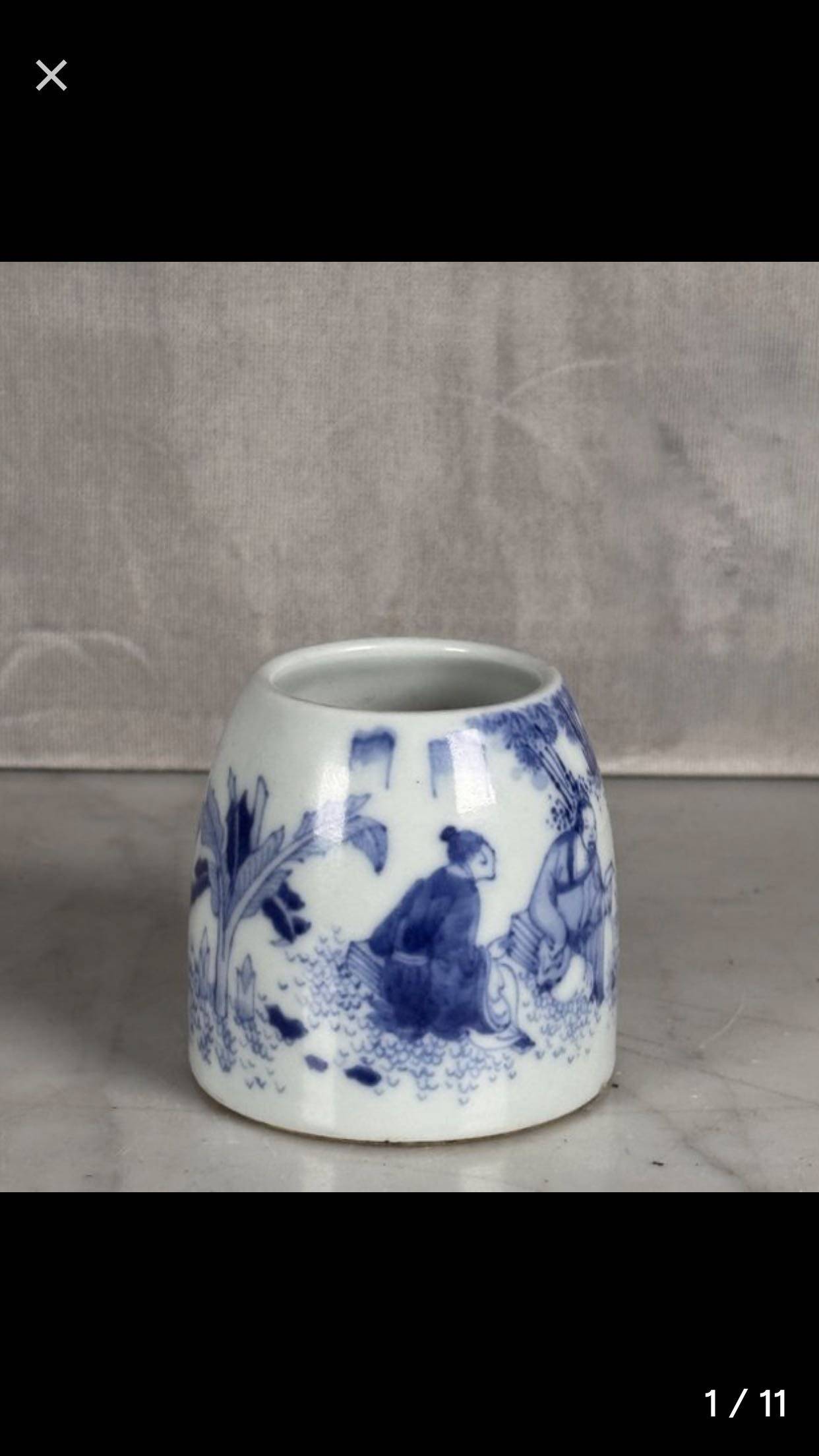 藏友你好:你图片所发这件乾隆款青花人物纹小罐,其造型呆板,釉面火气重,青花呈色漂浮,胎质生涩,沁色浮浅,是一件现代仿品,不建议购买收藏。