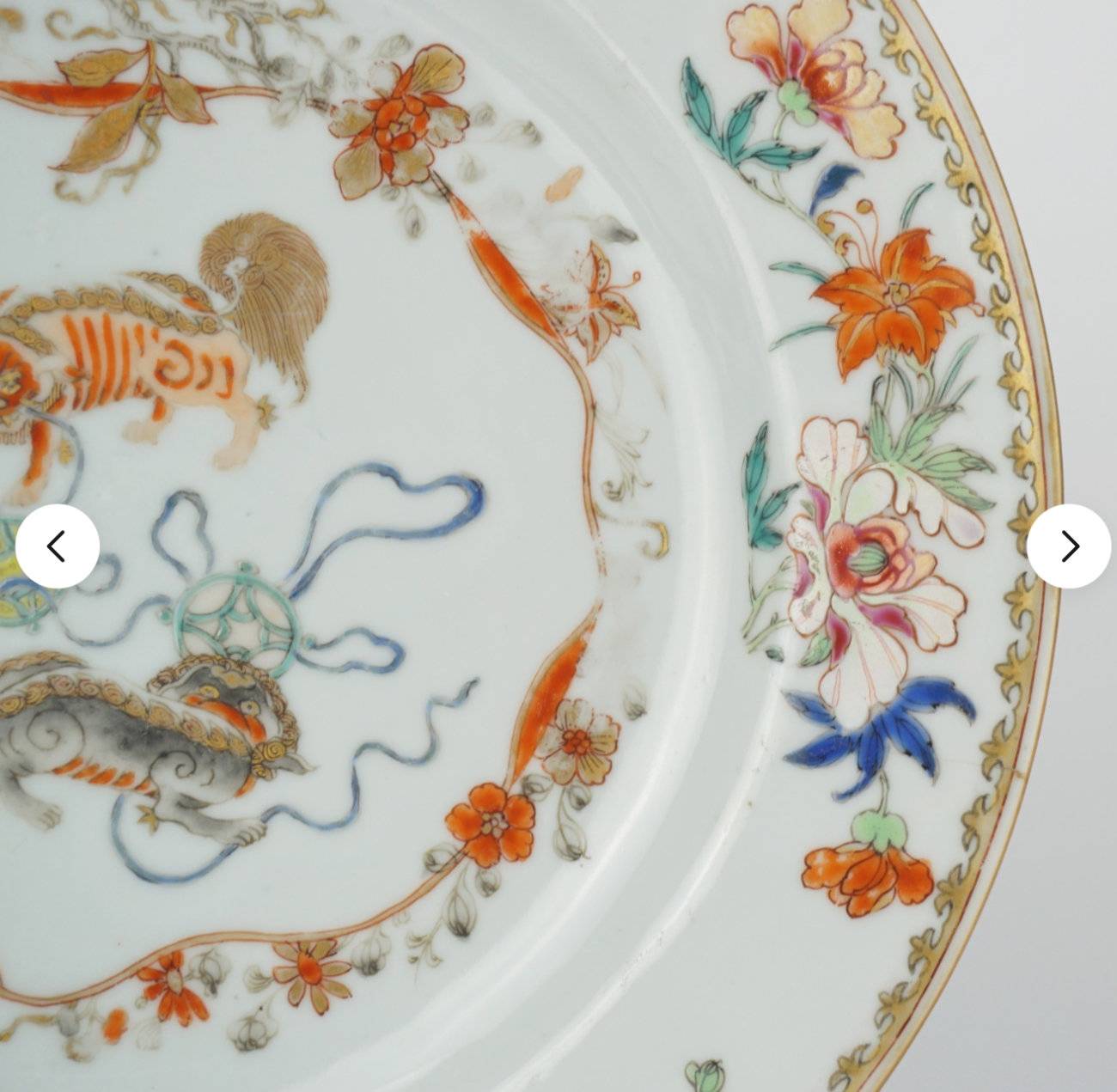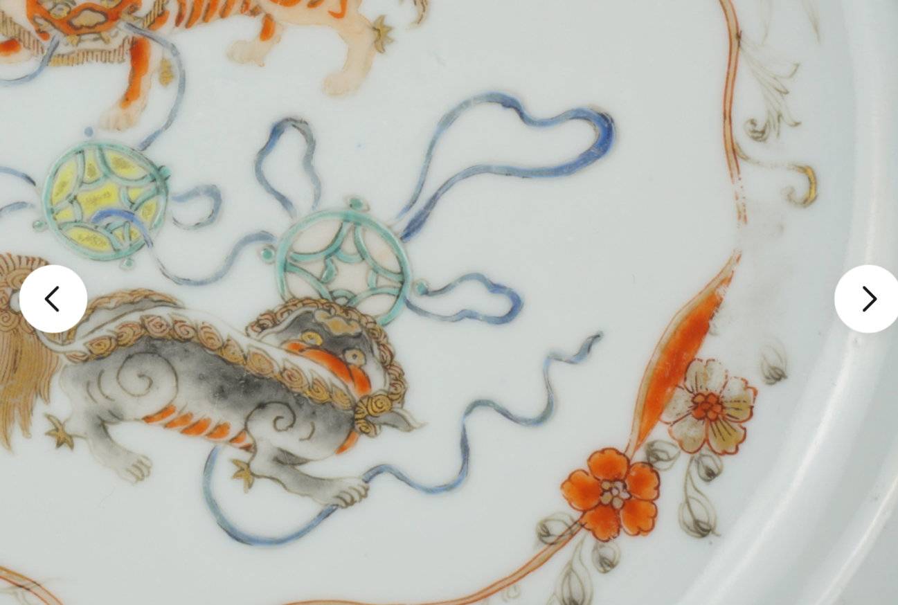 藏友你好:你图片所发这件粉彩狮戏纹折腰盘,其造型舒展,釉面温润,纹饰流畅,彩料纯正,修足娴熟,为清代中期真品。全品估价三四千元。