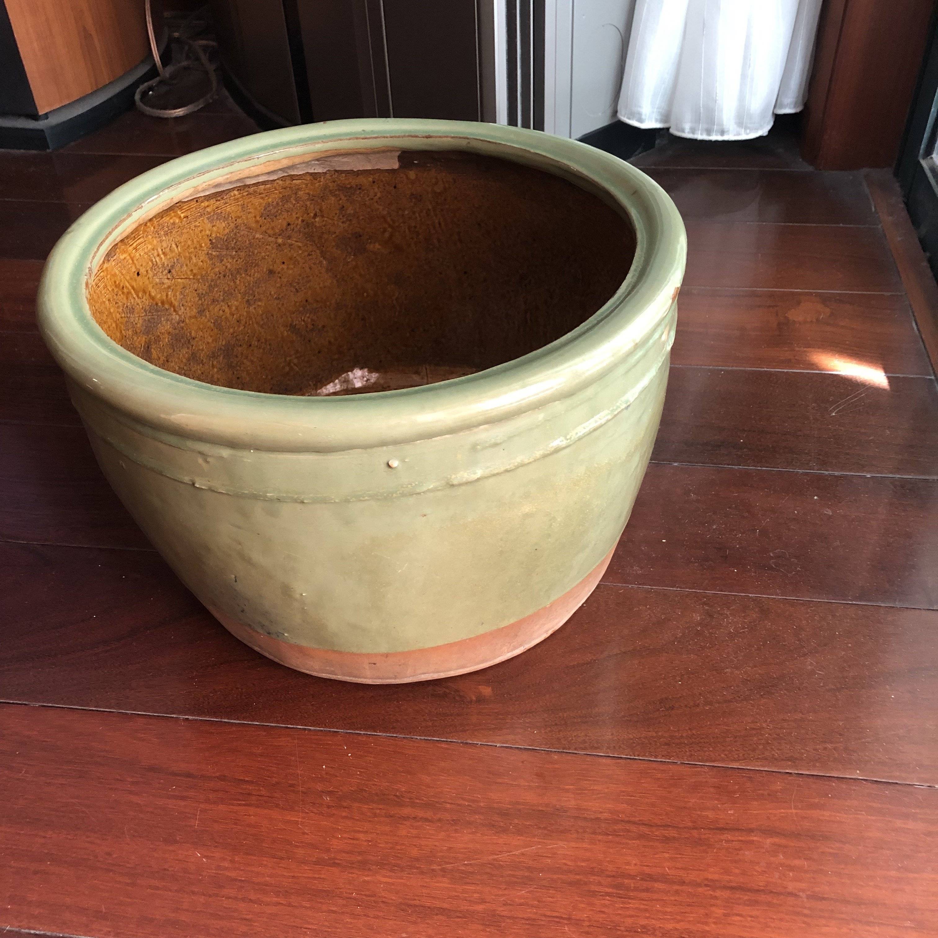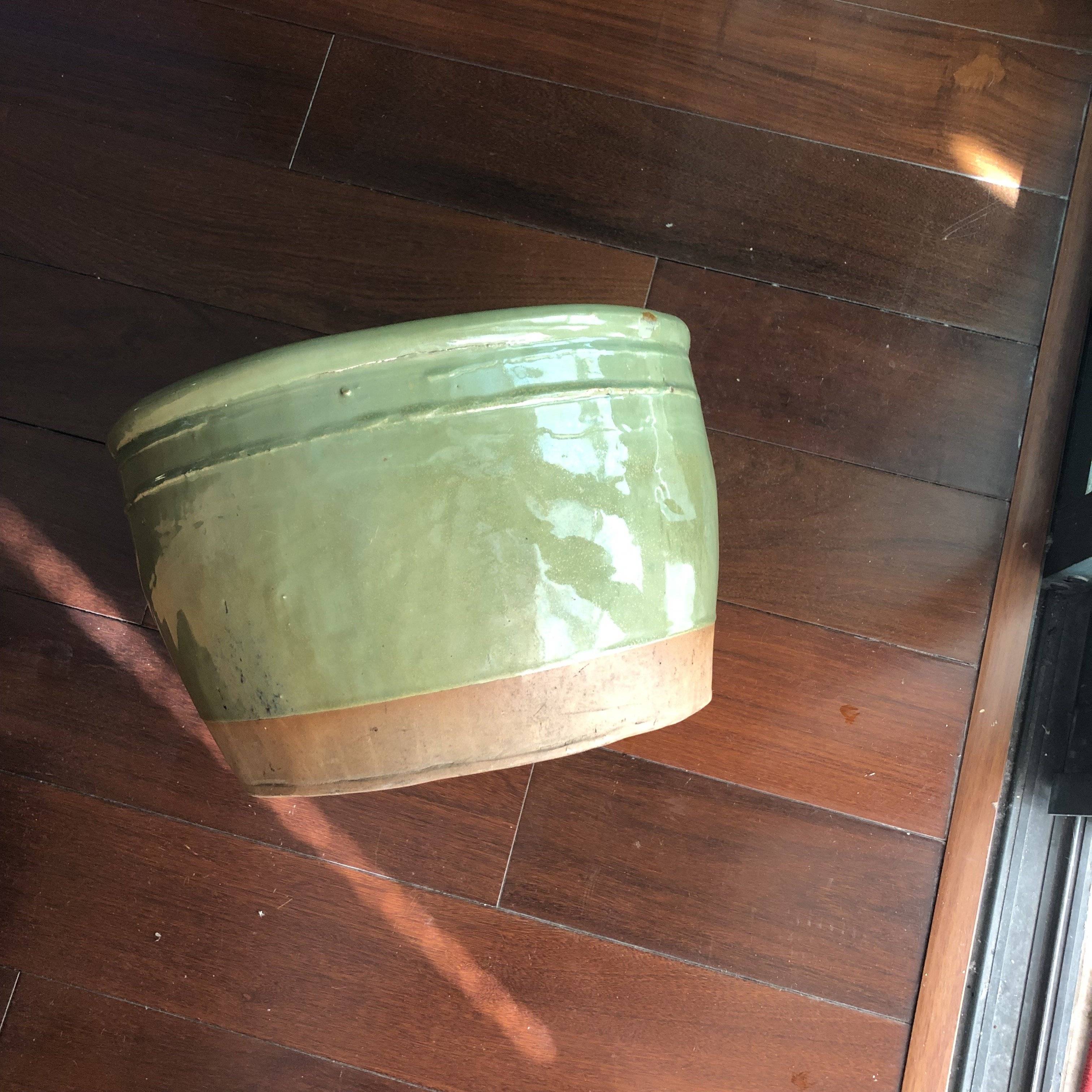 藏友你好:你图片所发这件绿釉小缸,其造型规整,釉面温润,有包浆,为民国时期真品。此类作为民俗用品传世量特别大,经济价值不高,几百元左右一只。