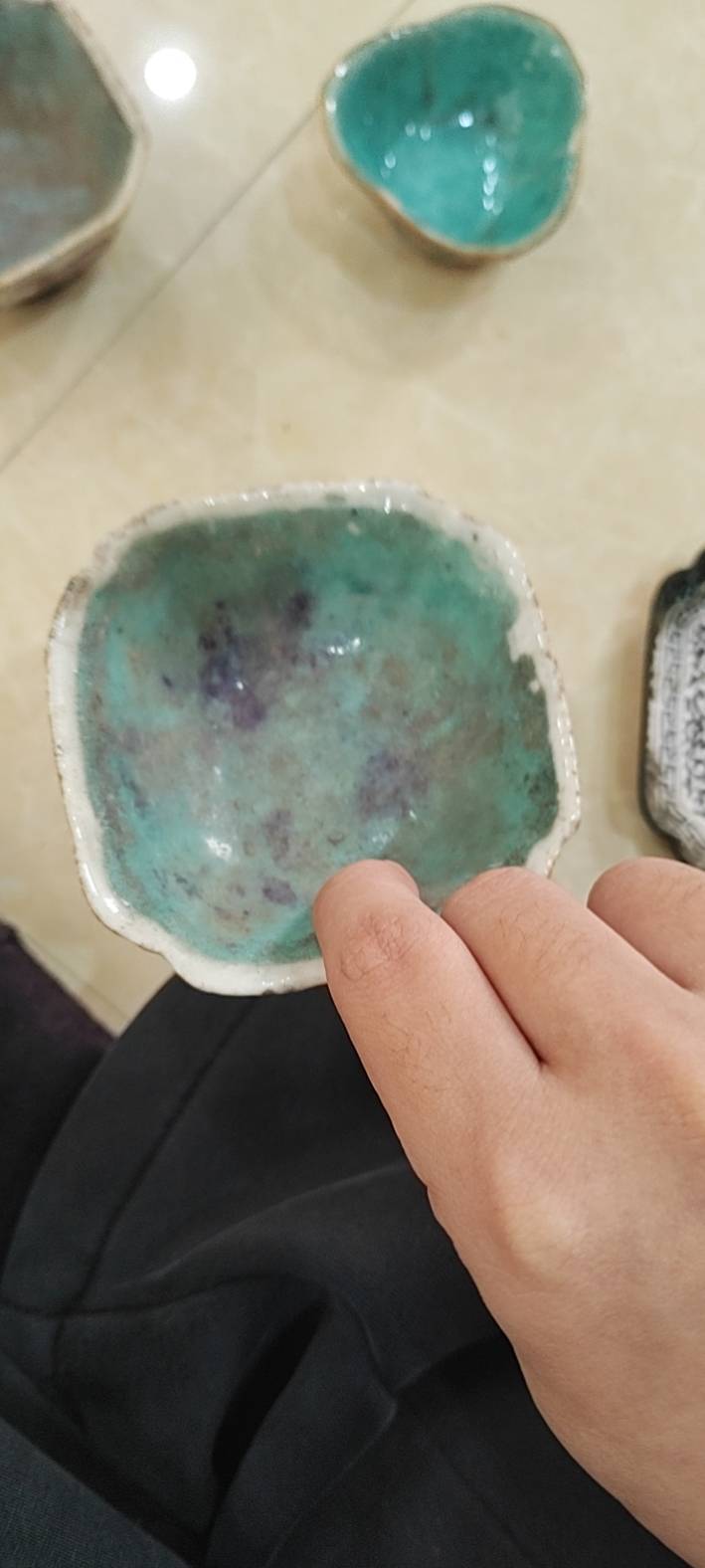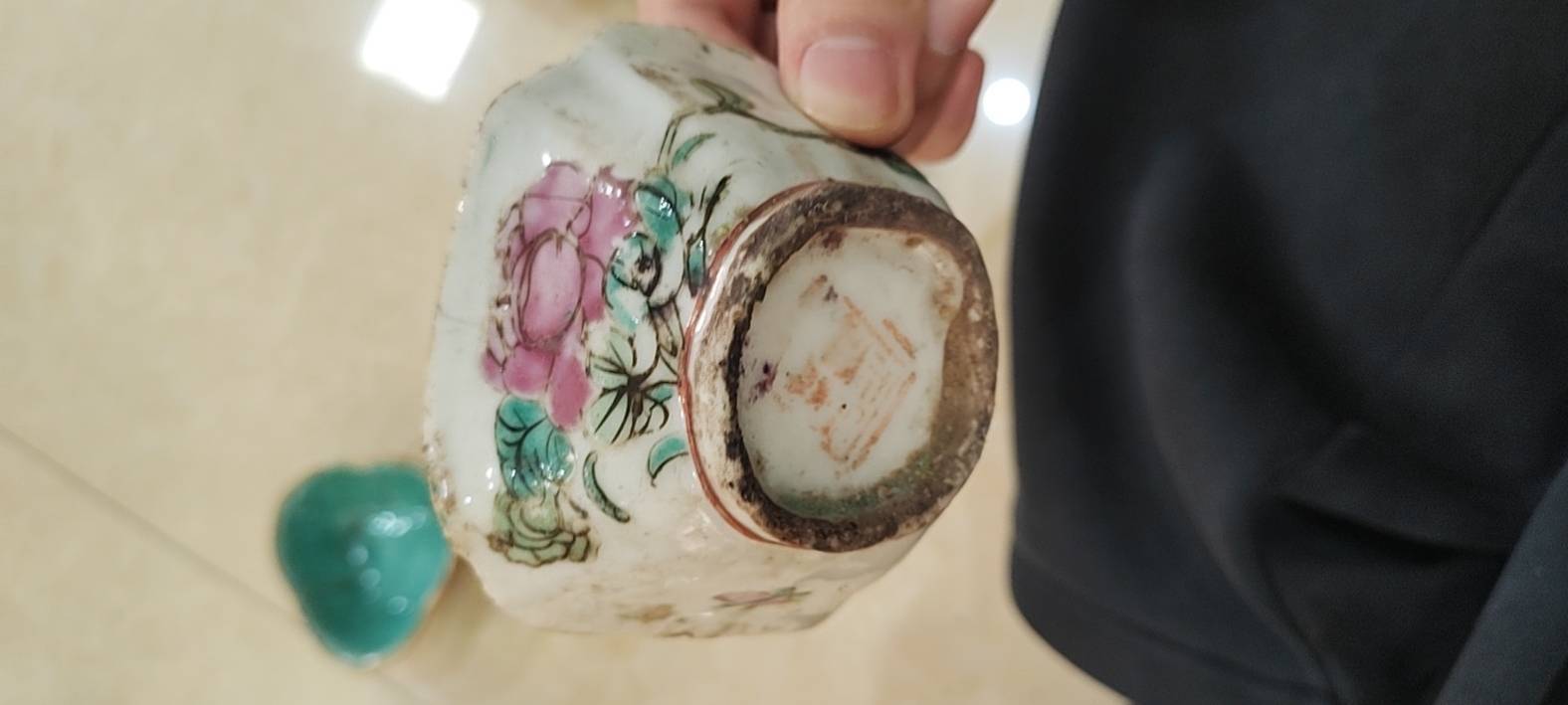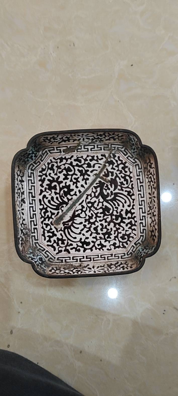 藏友你好:你图一所发粉彩花鸟花口小供碗,其造型规整,釉面温润,纹饰古雅,包浆浑厚,为晚清时期真品,但器身有冲线,对价值影响较大,估价小百元左右,图六也是真品,也有伤,价值也在小百元内。图五和图九两个铜胎加彩小盘为民国真品,有脱彩,价值也是小几百元左右。